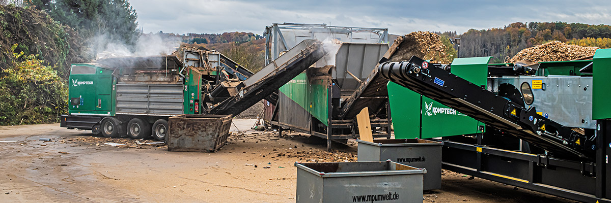 Unsere Aufbereitungsanlage für Altholz und Grünabfall hat eine Kapazität von bis zu 50.000 Tonnen pro Jahr. Die angelieferten Altholz- und Grünabfallqualitäten werden vorsortiert, zerkleinert und gesiebt, um sie danach einer ordnungsgemäßen stofflichen oder thermischen Verwer­tung zuzuführen.